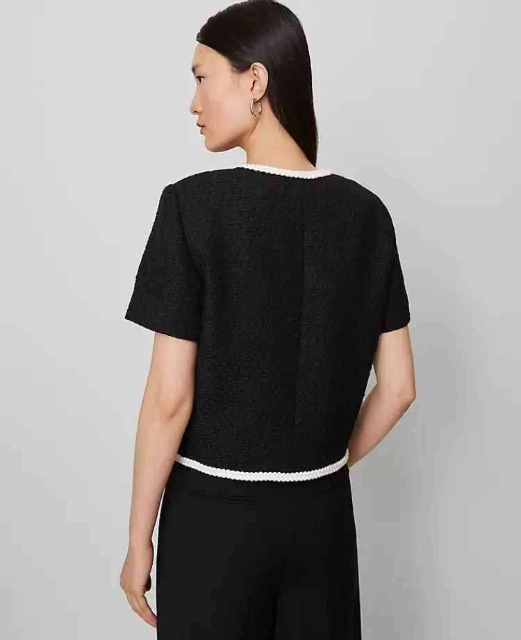 Ann Taylor Jackets And Blazers|Petite Jackets And Blazers|Petite Tweed Trim Jacket Black