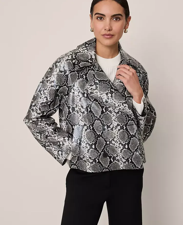 Ann Taylor Jackets And Blazers|Snake Print Belted Trench Coat Black/ Neutral Snakeskin