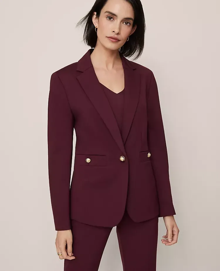Ann Taylor Jackets And Blazers|Suits|The Petite One Button Blazer In Ponte Poised Plum