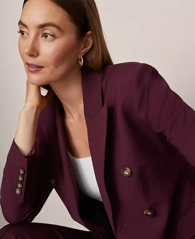 Ann Taylor Jackets And Blazers|The Fitted Long Double Breasted Blazer Poised Plum