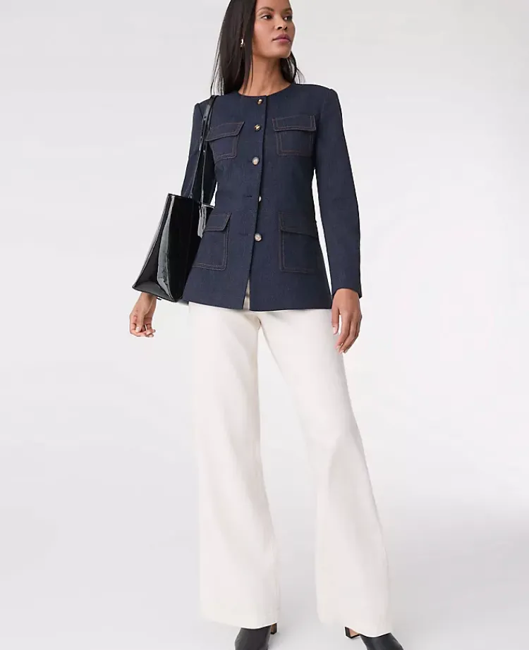 Ann Taylor Jackets And Blazers|The Long Crew Neck Jacket In Denim Indigo Blend