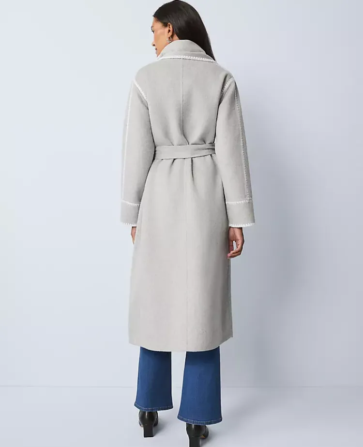 Discover Ann Taylor Weekend. Effortlessly polished pieces for wherever your plans take you. This polished and tailored coat is designed with a chic removable scarf that offers multiple styling possibilities. Stand collar. Long sleeves. Waist tie belt. Front patch pockets. Back vent. Removable scarf with back button fastening.