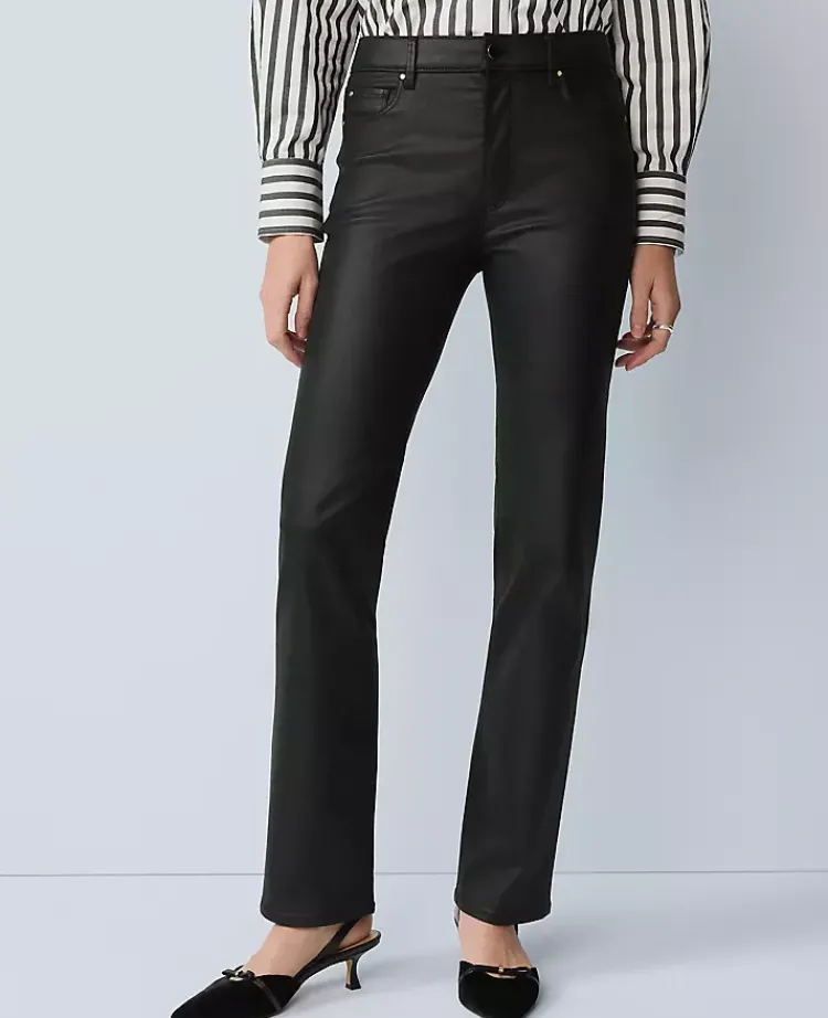 Ann Taylor Jeans|Petite Jeans|The Petite Coated Perfect Straight Jean Black Coated