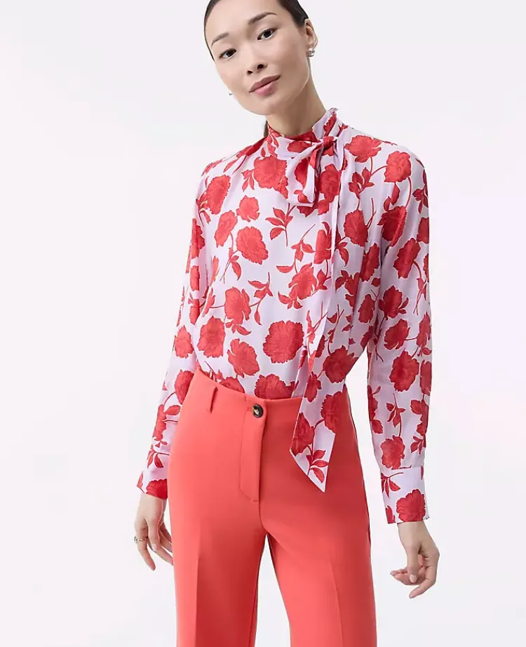 Ann Taylor New Petite Styles|Petite Floral Bow Blouse Fiery Sunset