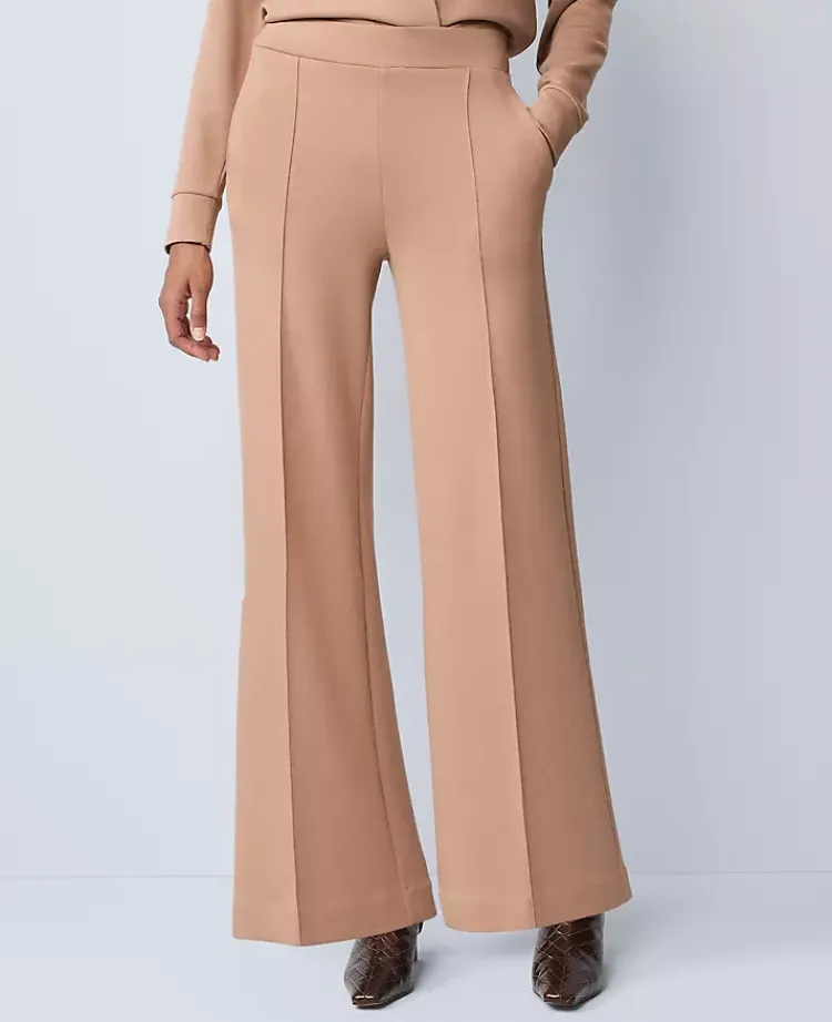 Discover Ann Taylor Weekend. Effortlessly polished pieces for wherever your plans take you. Crafted in buttery soft scuba, these pants are a modern must-have with an easy fit, a statement leg and a flattering high waist. Elasticized waist. Front off-seam pockets.