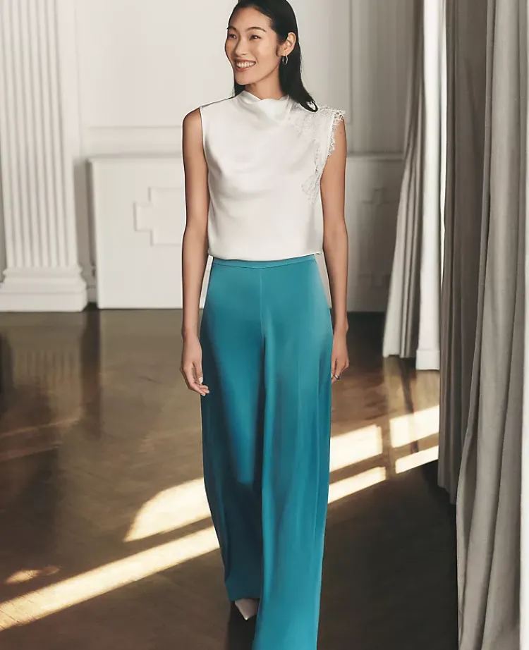 Ann Taylor Pants|Petite Pants|The Petite Statement Palazzo Pant In Satin Moroccan Turquoise