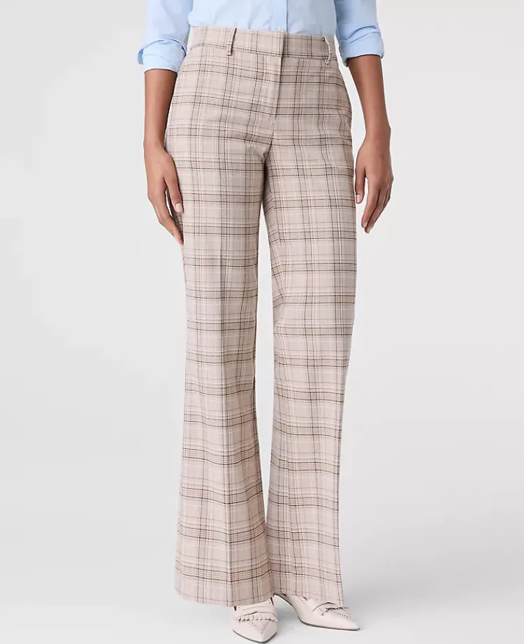 Ann Taylor Pants|The Jayne Trouser In Plaid – Curvy Fit Tan/Navy Plaid
