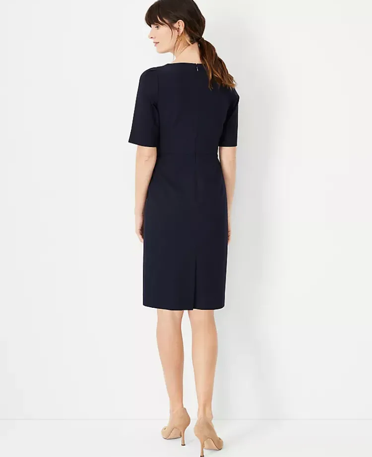 Ann Taylor Petite Dresses|Petite Suits|The Petite Elbow Sleeve Square Neck Dress In Seasonless Stretch Deep Navy Sky