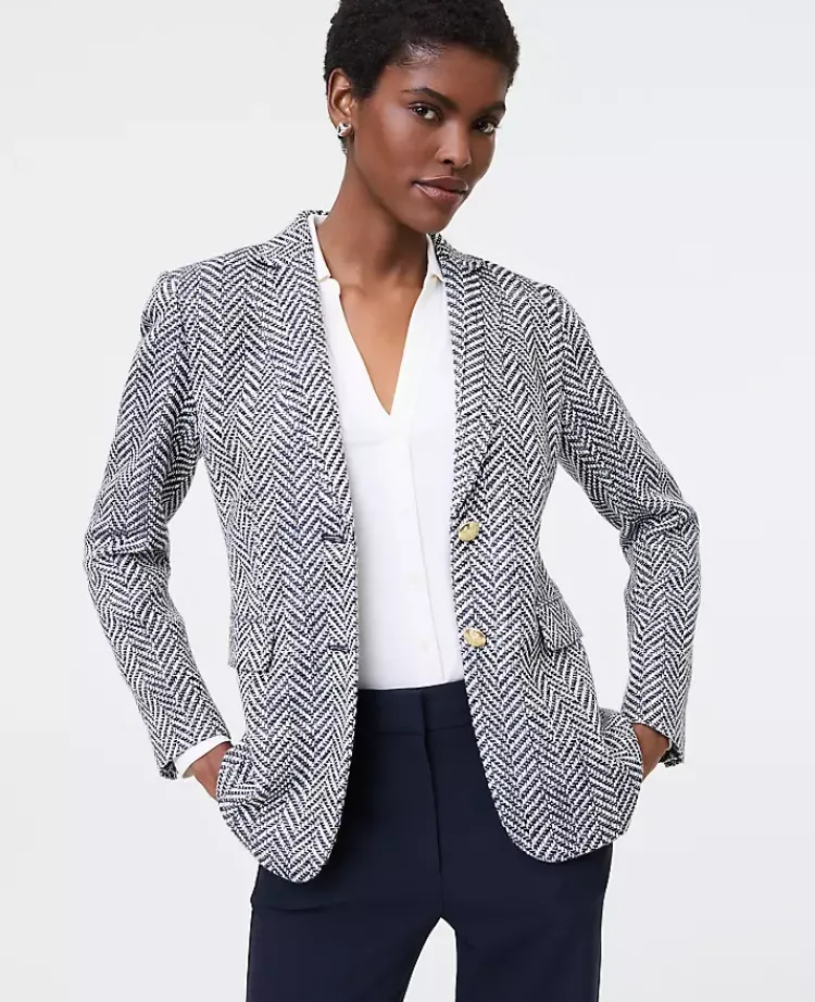 Ann Taylor Petite Jackets And Blazers|New Petite Styles|The Petite Greenwich Blazer In Herringbone Tweed Speckled Navy/White