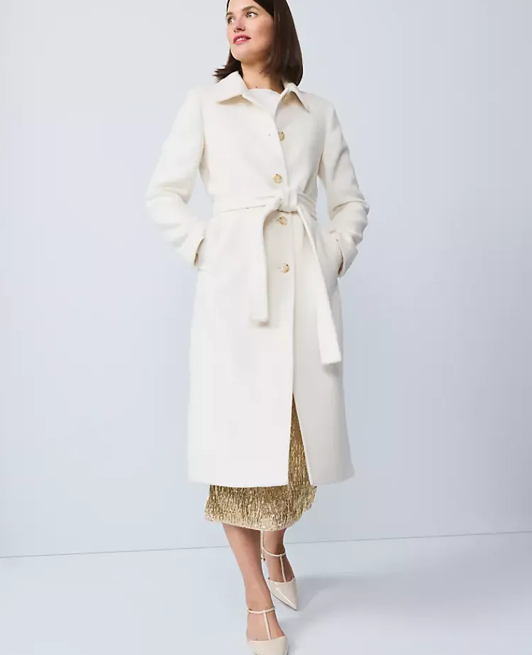 Ann Taylor Petite Jackets And Blazers|Petite Belted Everyday Coat Winter White