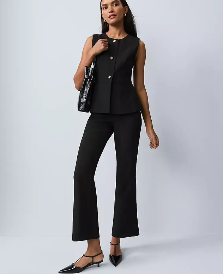 Ann Taylor Petite Jackets And Blazers|Petite Suits|Petite Crew Neck Peplum Vest Black