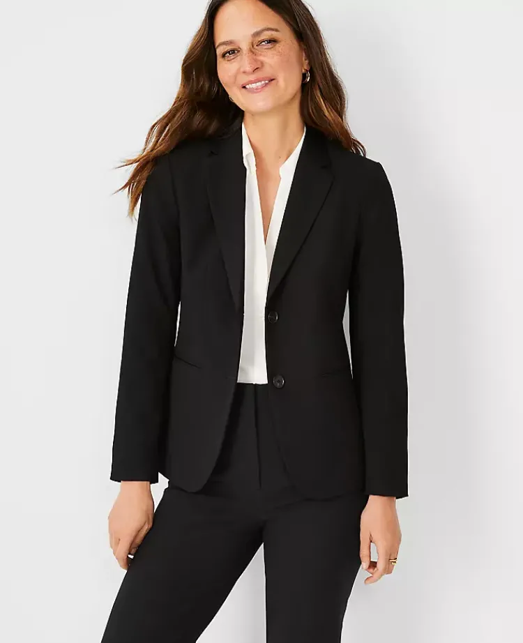 Ann Taylor Petite Jackets And Blazers|Petite Suits|The Petite Long Two Button Blazer In Seasonless Stretch Core Black