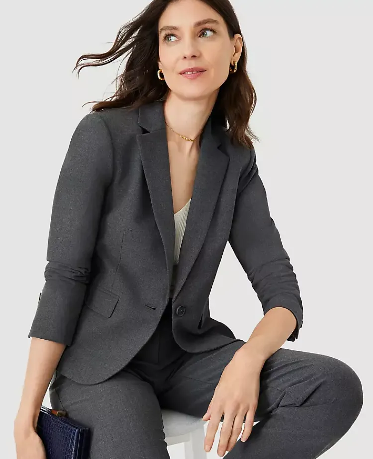 Ann Taylor Petite Jackets And Blazers|Petite Suits|The Petite Notched One Button Blazer In Seasonless Stretch Modern Charcoal