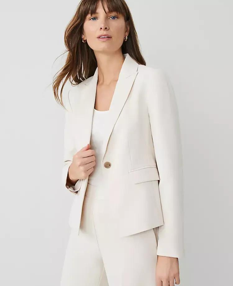 Ann Taylor Petite Jackets And Blazers|Petite Suits|The Petite Shorter One Button Blazer In Fluid Crepe Ivory Whisper