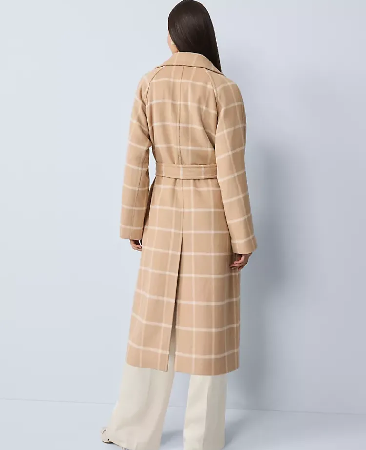 Ann Taylor Petite Jackets And Blazers|Petite Windowpane Belted Coat Cafe Au Lait