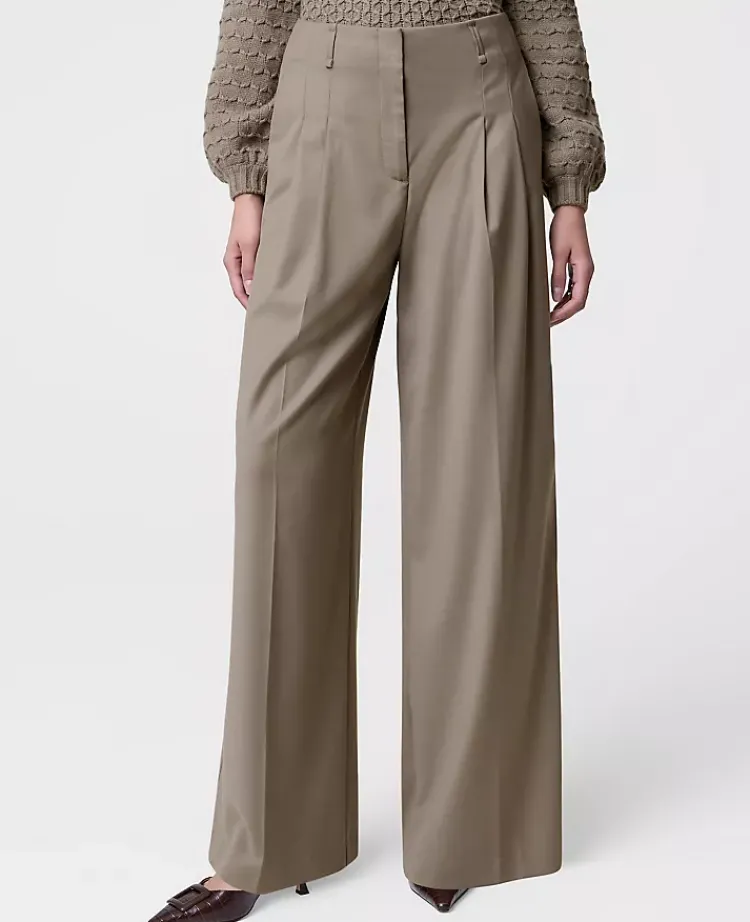 Ann Taylor Petite Pants|Petite Pants|The Petite Pleated Wide-Leg Pant Dried Moss
