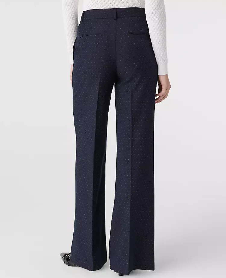 Ann Taylor Petite Pants|Petite Suits|The Petite Dotted Wide-Leg Flare Trouser Navy Woven Pin Dot