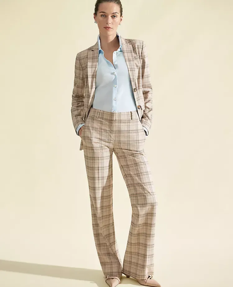 Ann Taylor Petite Pants|Petite Suits|The Petite Jayne Trouser In Plaid Tan/Navy Plaid