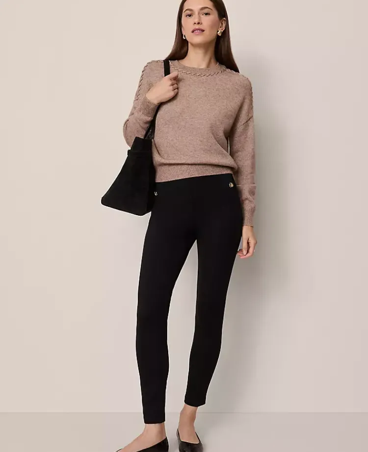 Ann Taylor Petite Pants|The Petite Seamed Button Legging In Ponte Black