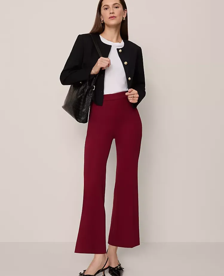 Ann Taylor Petite Pants|The Petite Side Zip Flare Pant Cherry Pie