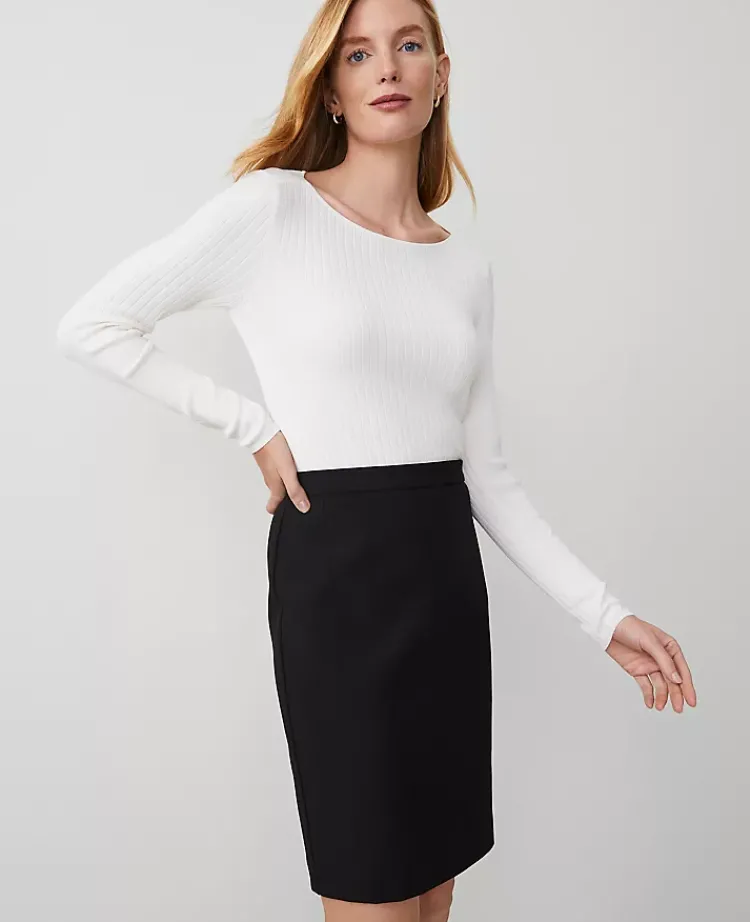 Ann Taylor Petite Skirts|Petite Bi-Stretch Seamed Pencil Skirt Black