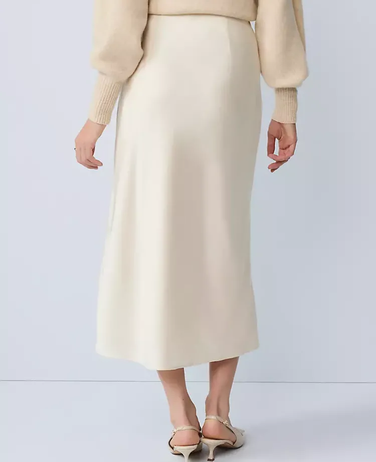 Ann Taylor Petite Skirts|Petite Satin Bias Midi Slip Skirt Feather