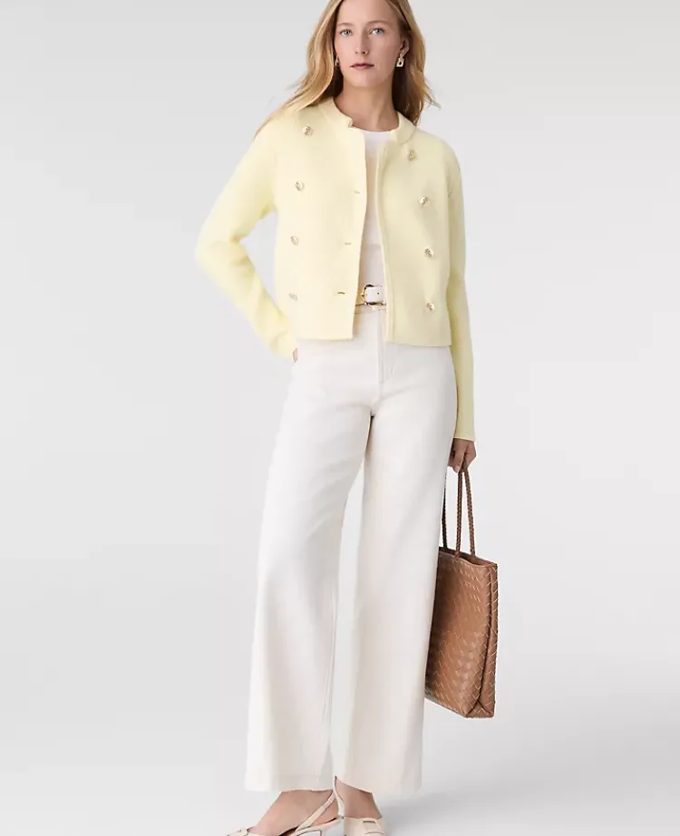 Ann Taylor Petite Sweaters|Petite Double Breasted Sweater Jacket Tender Yellow