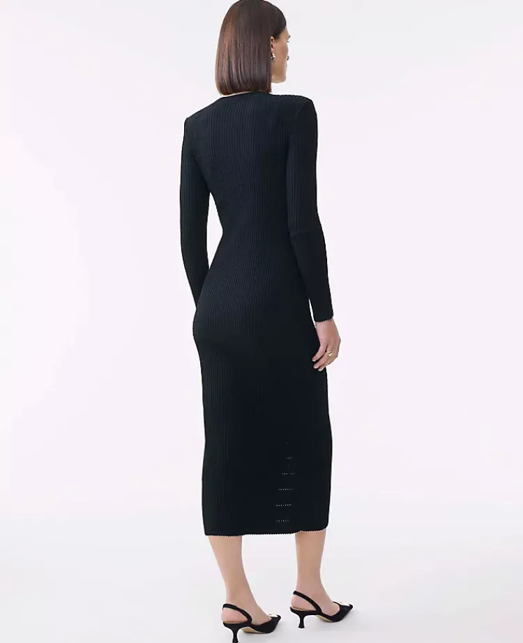 Ann Taylor Petite Sweaters|Petite Dresses|Petite Ribbed Button Sweater Dress Black