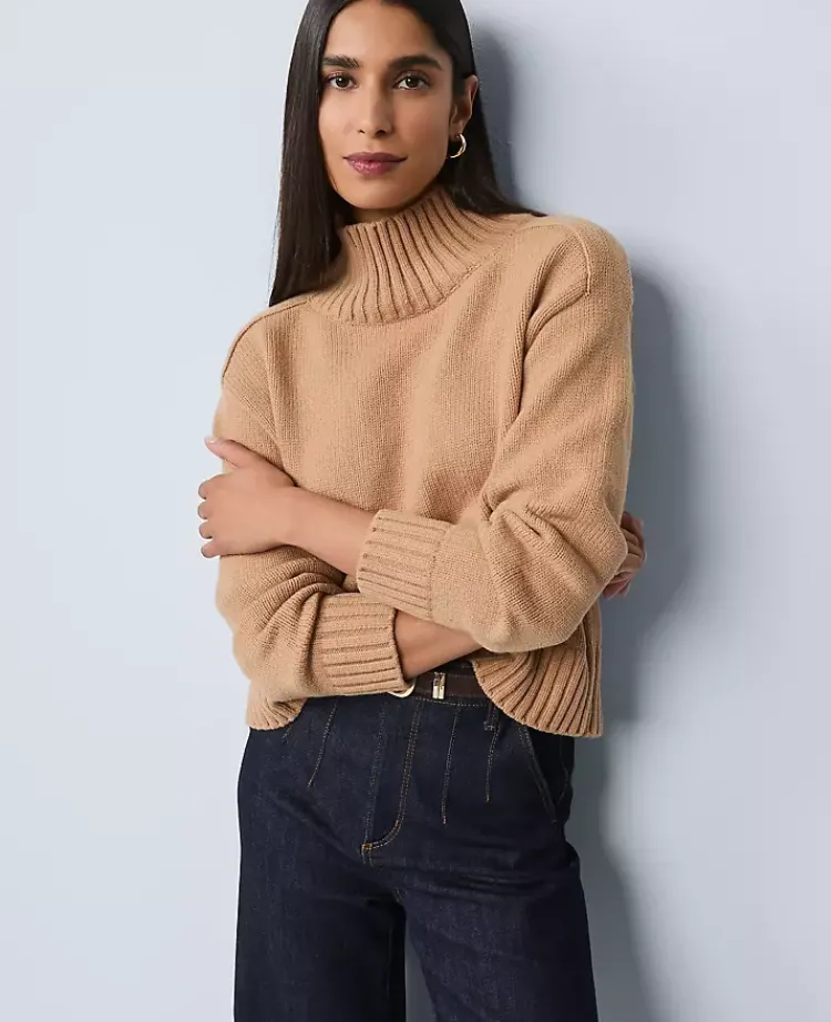 Ann Taylor Pullover Sweaters|Ribbed Mock Neck Sweater Cafe Au Lait