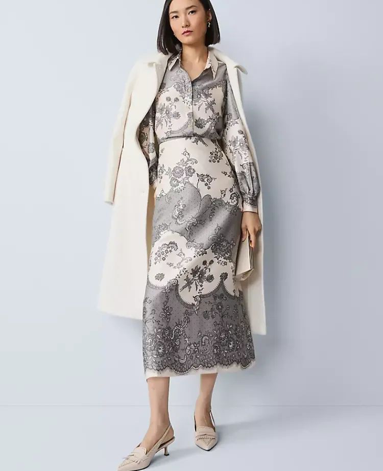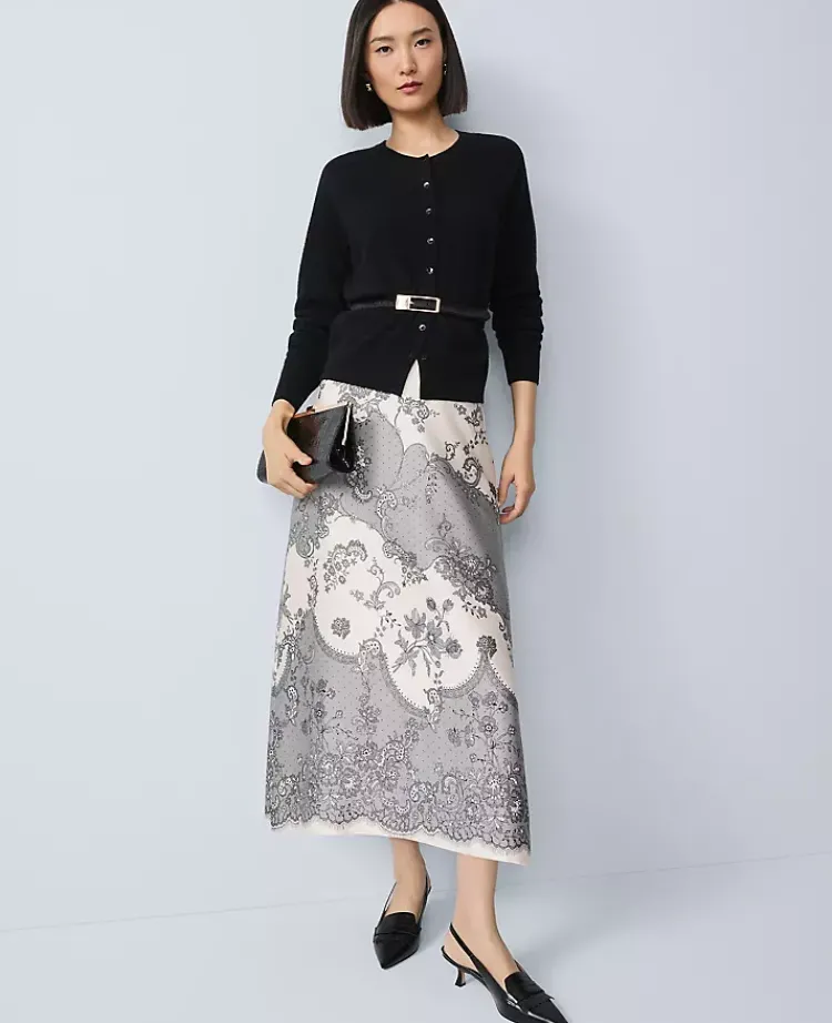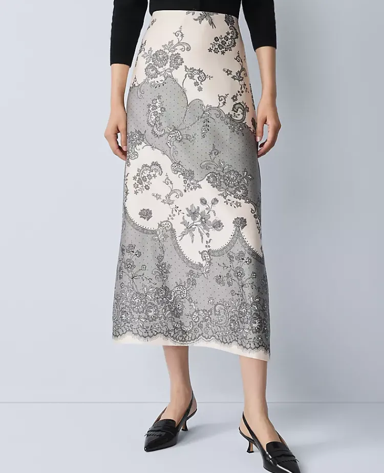 Ann Taylor Skirts|Floral Satin Midi Skirt Ivory Whisper
