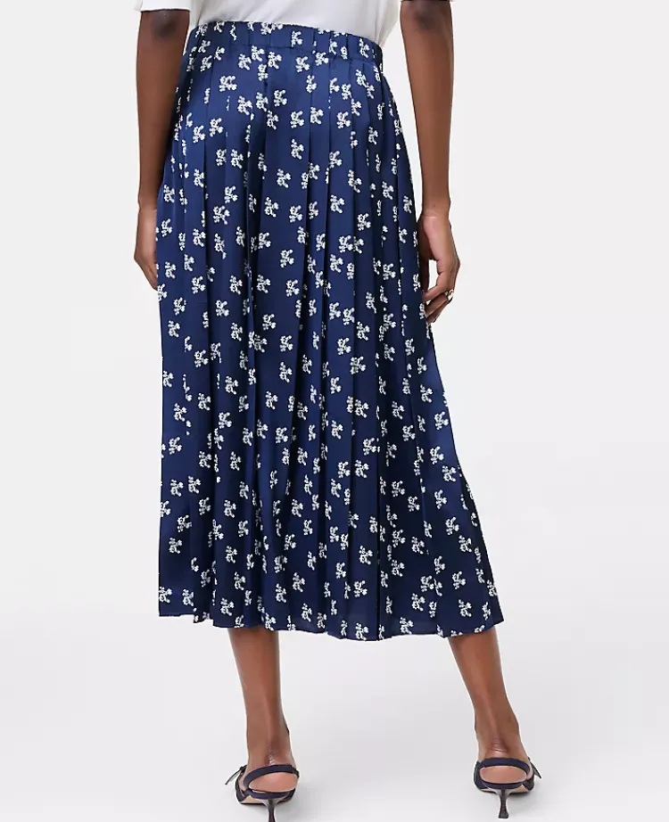 Ann Taylor Skirts|Floral Satin Pleated Midi Skirt Indigo Dusk