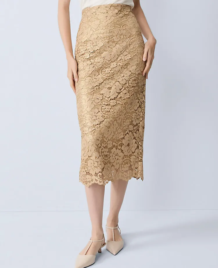 Ann Taylor Skirts|Lace Column Midi Skirt Gold Lace