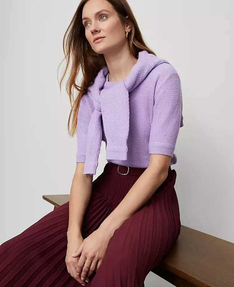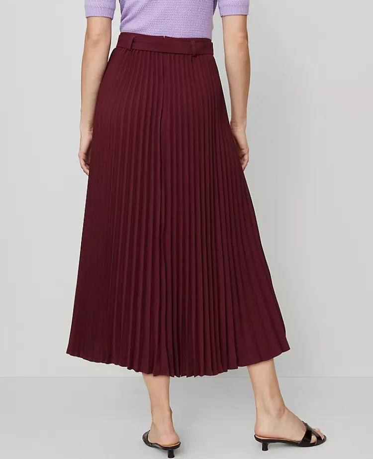 Ann Taylor Skirts|Petite Skirts|Petite Belted Pleated Midi Skirt Windsor Wine