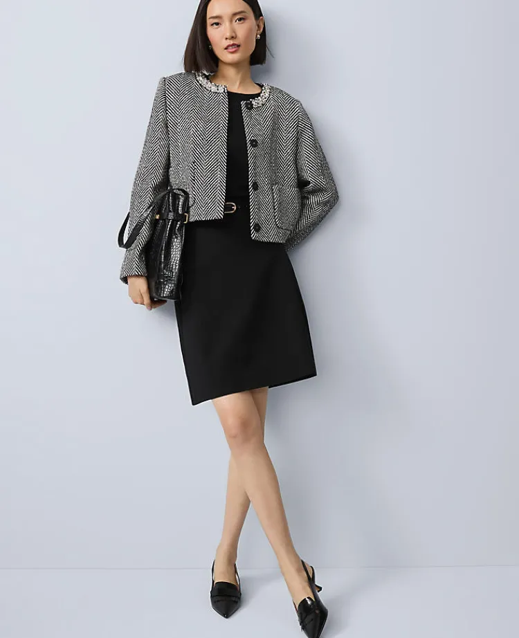 Ann Taylor Skirts|Ponte Belted A-Line Skirt Black