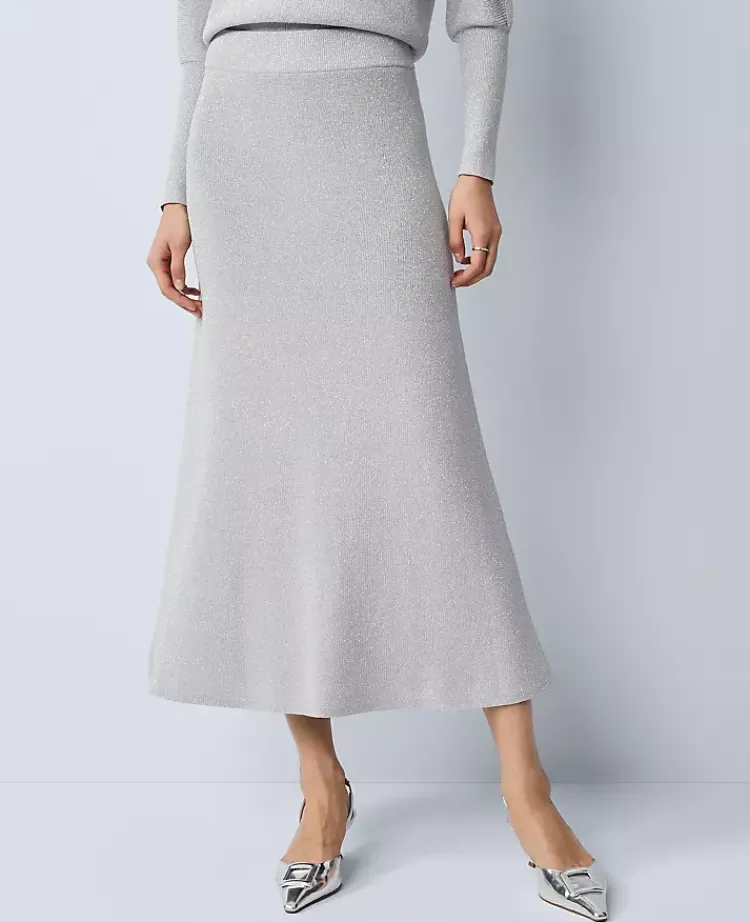 Ann Taylor Skirts|Ribbed Lurex Midi Skirt Medium Light Heather Grey