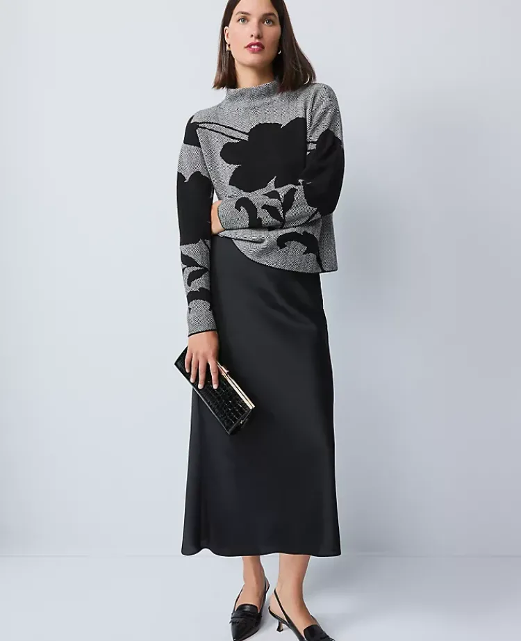 Ann Taylor Skirts|Satin Bias Midi Slip Skirt Black