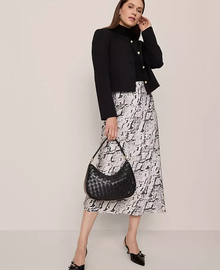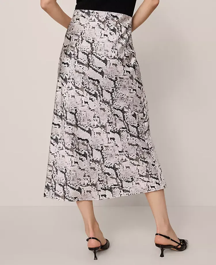 Ann Taylor Skirts|Snake Print Satin Bias Slip Skirt Winter White