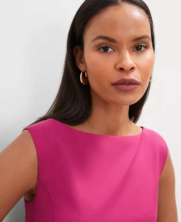 Made in a polished-yet-comfortable stretch fabric for a refined, streamlined fit – and structured and modern with a custom tailored feel – this dress always shifts your style in a sleek direction. Boatneck. Cap sleeves. Back zip. Lined.