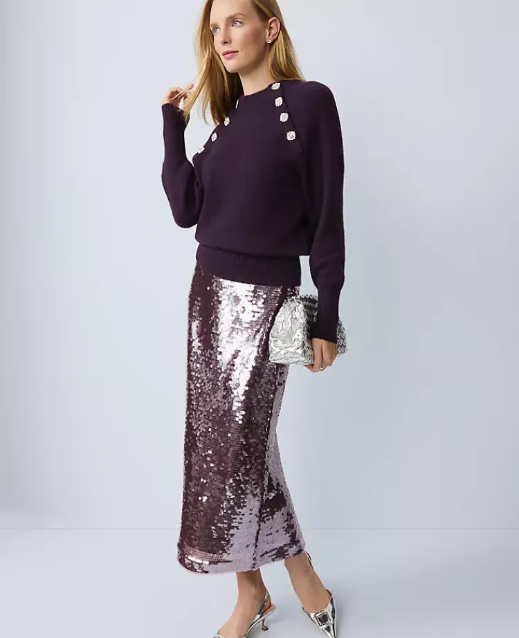 Ann Taylor Sweaters|All Sweaters|Embellished Mock Neck Sweater Aubergine Dream