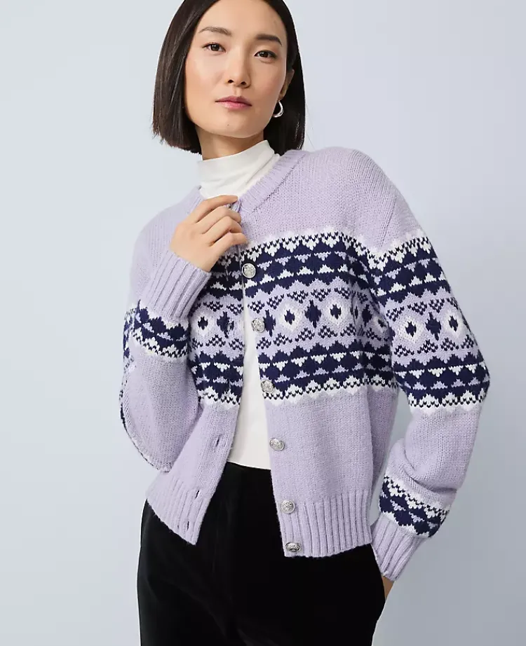 Ann Taylor Sweaters|All Sweaters|Fair Isle Cardigan Lavender Bouquet