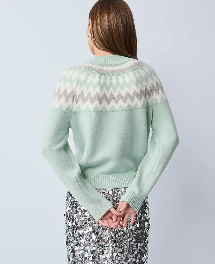 Ann Taylor Sweaters|All Sweaters|Fair Isle Mock Neck Sweater Green Multi