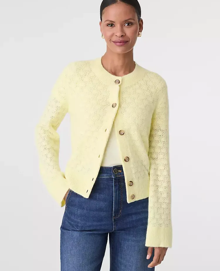 Ann Taylor Sweaters|All Sweaters|Honeycomb Stitch Cardigan Tender Yellow