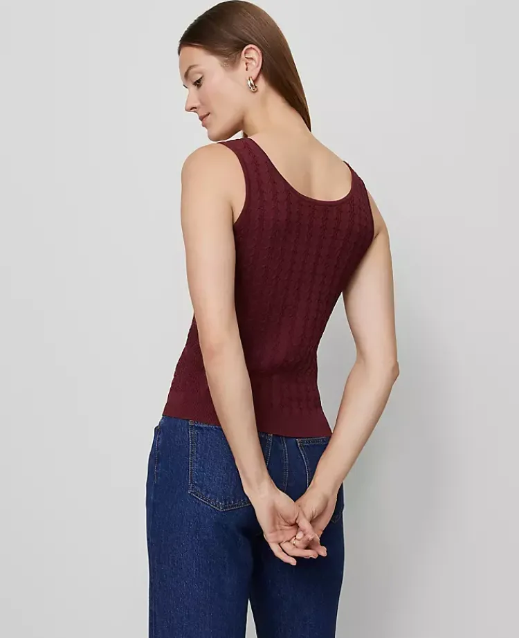Ann Taylor Sweaters|All Sweaters|Mixed Cable Sweater Shell Windsor Wine