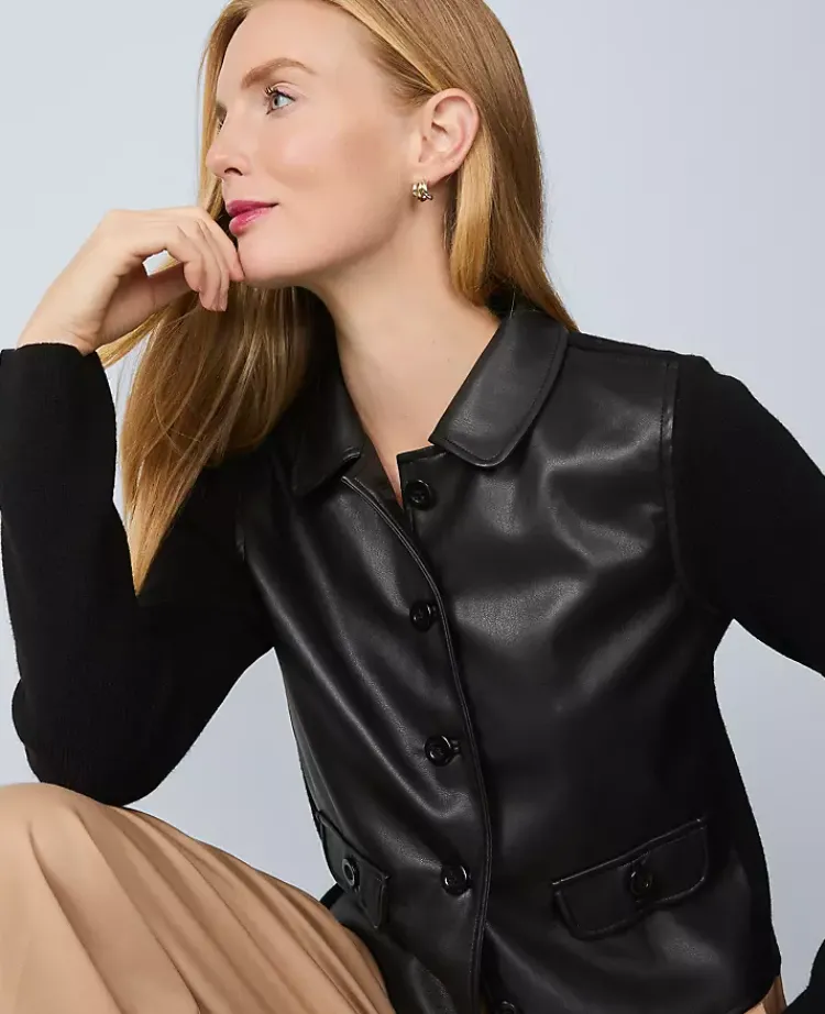 Ann Taylor Sweaters|All Sweaters|Mixed Media Collared Jacket Black