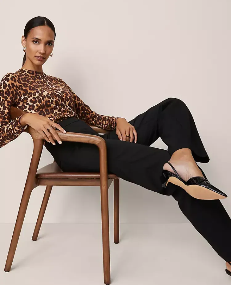 Ann Taylor Sweaters|All Sweaters|Petite Animal Print Essential Crew Neck Sweater Brown