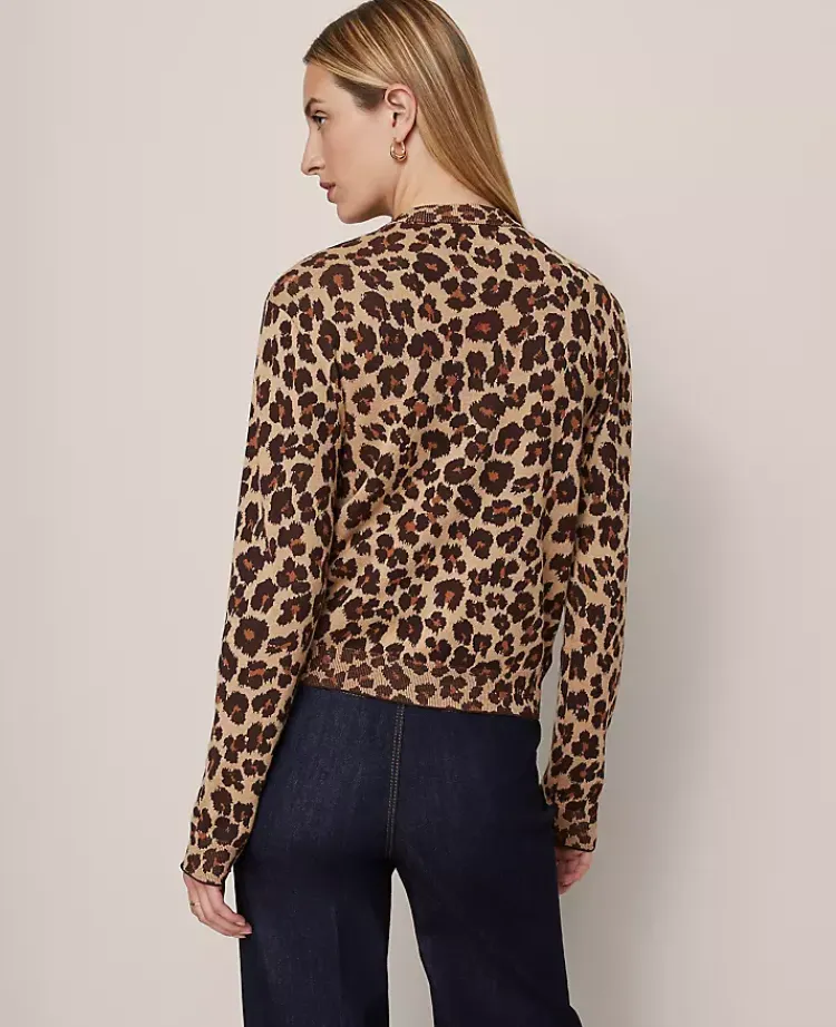 Ann Taylor Sweaters|All Sweaters|Petite Animal Print Jacquard Cardigan Almond Croissant