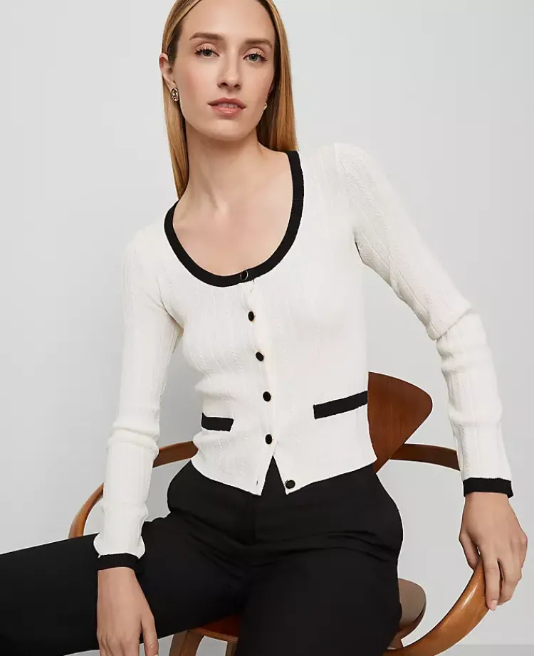 Ann Taylor Sweaters|All Sweaters|Petite Contrast Trim Cardigan Winter White