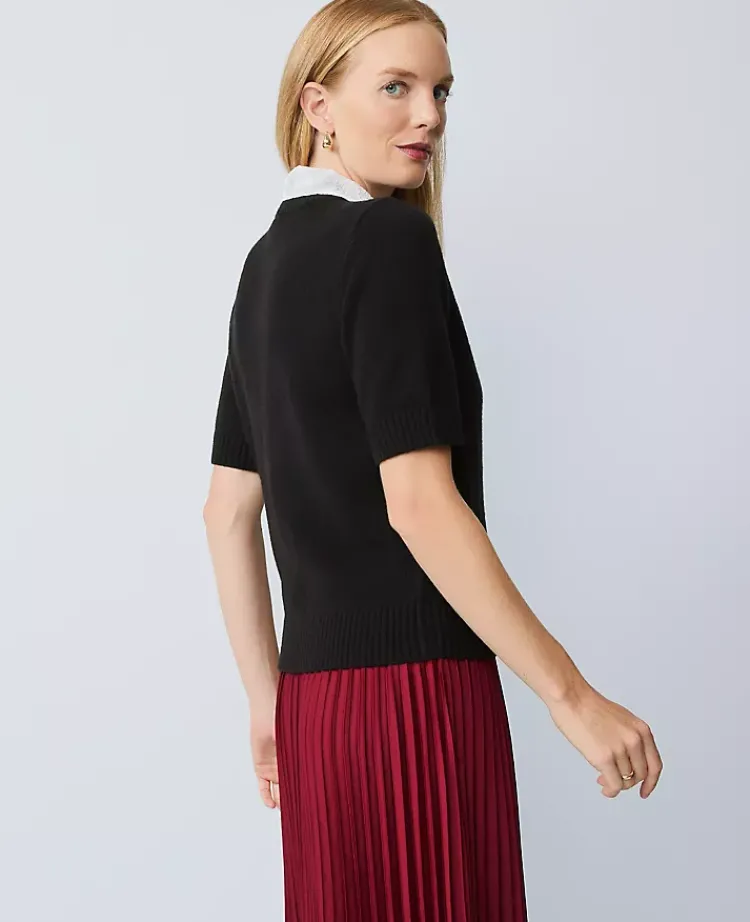 Ann Taylor Sweaters|All Sweaters|Petite Lace Collar Sweater Tee Black