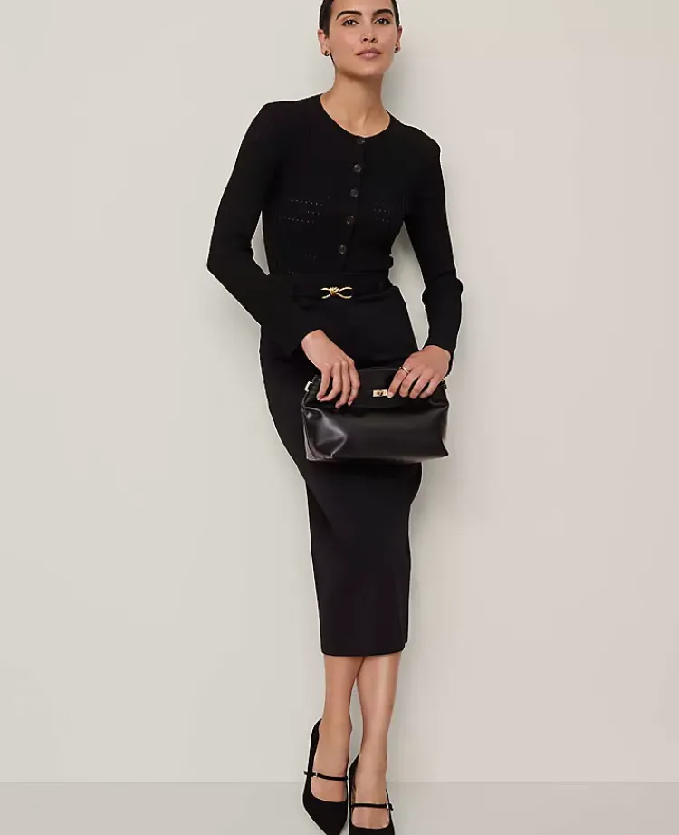 Ann Taylor Sweaters|All Sweaters|Petite Ribbed V-Neck Cardigan Black