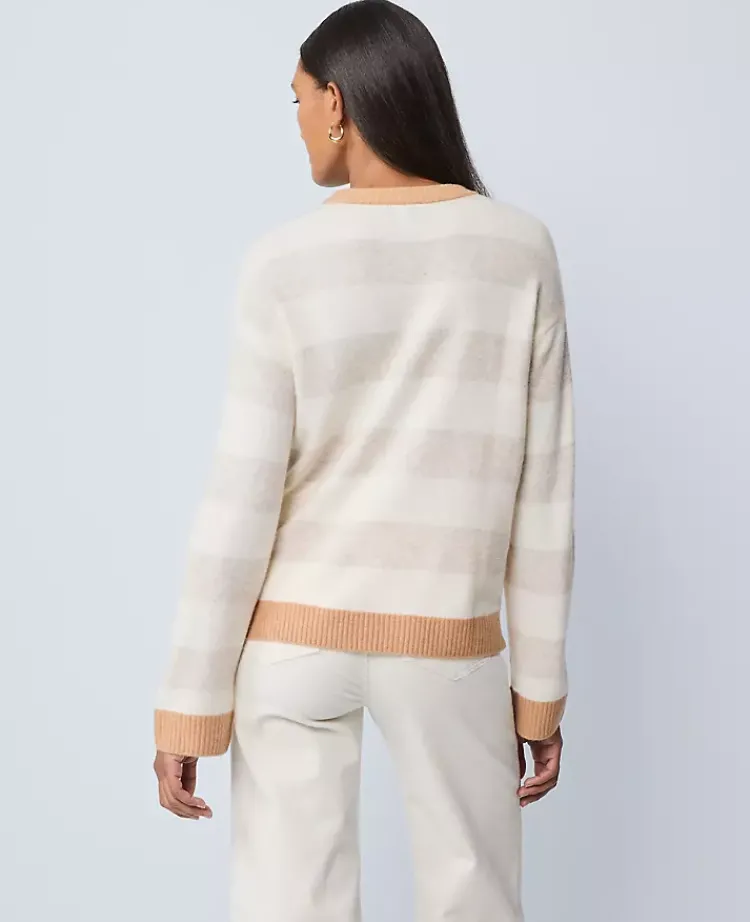Ann Taylor Sweaters|All Sweaters|Petite Weekend Collection Striped Crew Neck Sweater Neutral